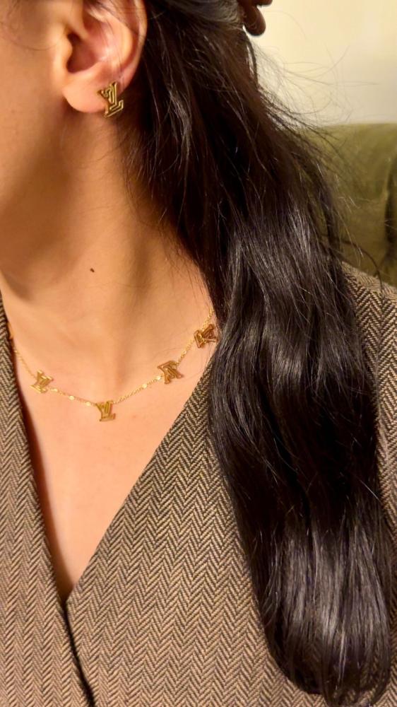طقم إكسسوار فاخر – سلسلة وحلق مع ملحقات الماركة