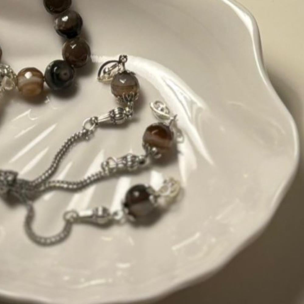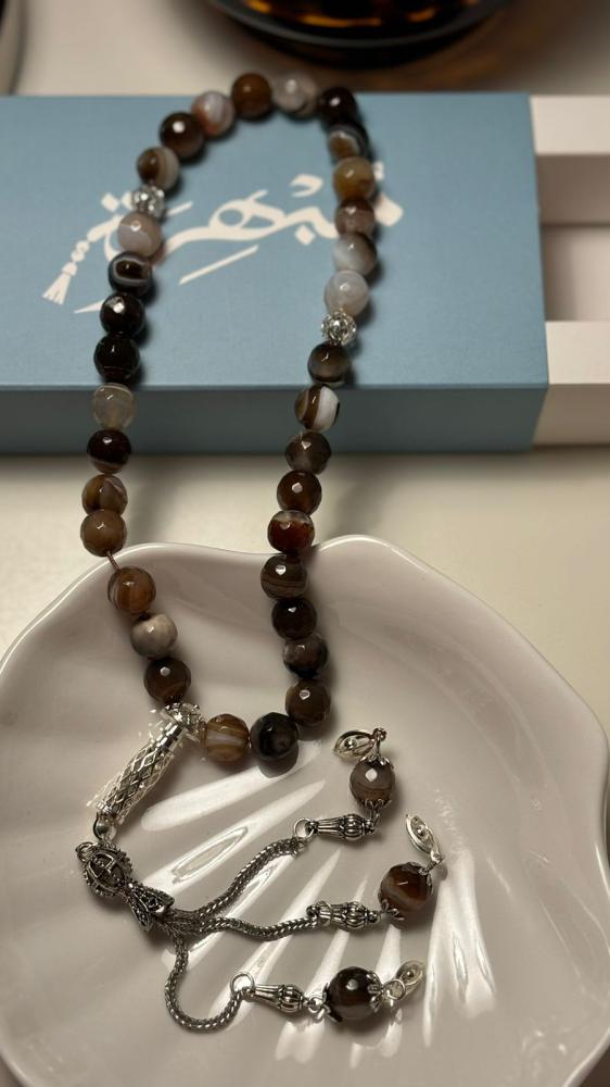 سبحة مصنوعة من أحجار العقيق البرازيلي الفاخر، بتصميم أنيق يعكس الفخامة والأصالة. تتميز بلمعانها الطبيعي ولمستها الناعمة، مما يجعلها خيارًا مثاليًا للاستخدام الشخصي أو كهدية مميزة لأحبائك.